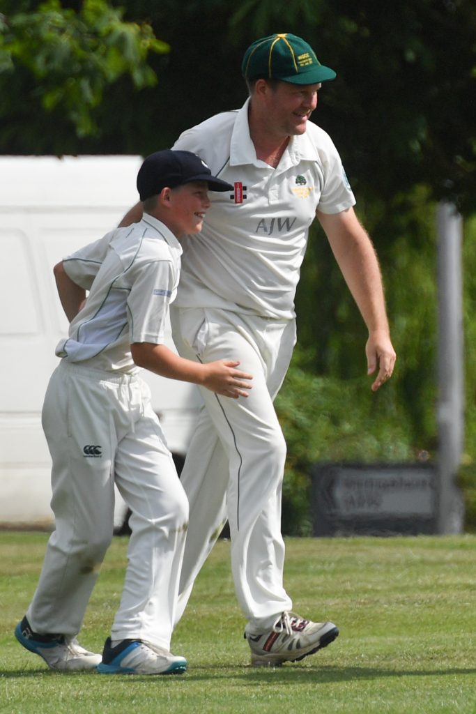 Special moment – Will Dixon and dad Tarnie Dixon after Will’s direct throw dismissed Broadwaters opener on 134
