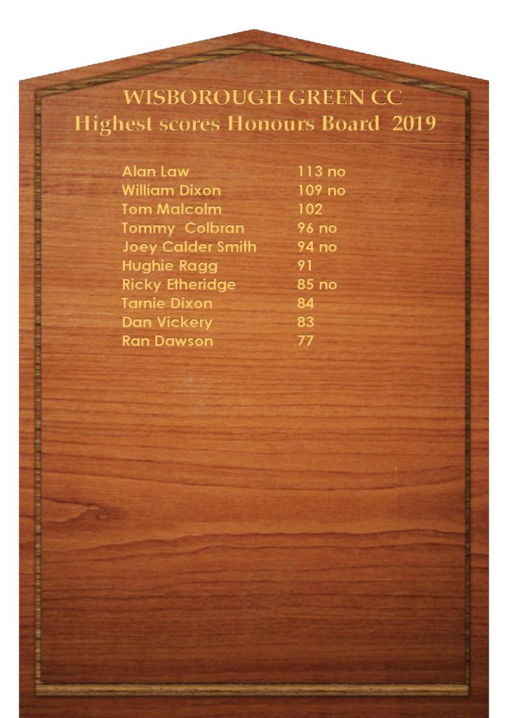 Congratulations to all those who made it onto the board – some truly incredible performances during the season. Interesting to see how many not outs there were in the top scores, and what a pleasure to see two of our colts featuring so prominently . The future is bright !!