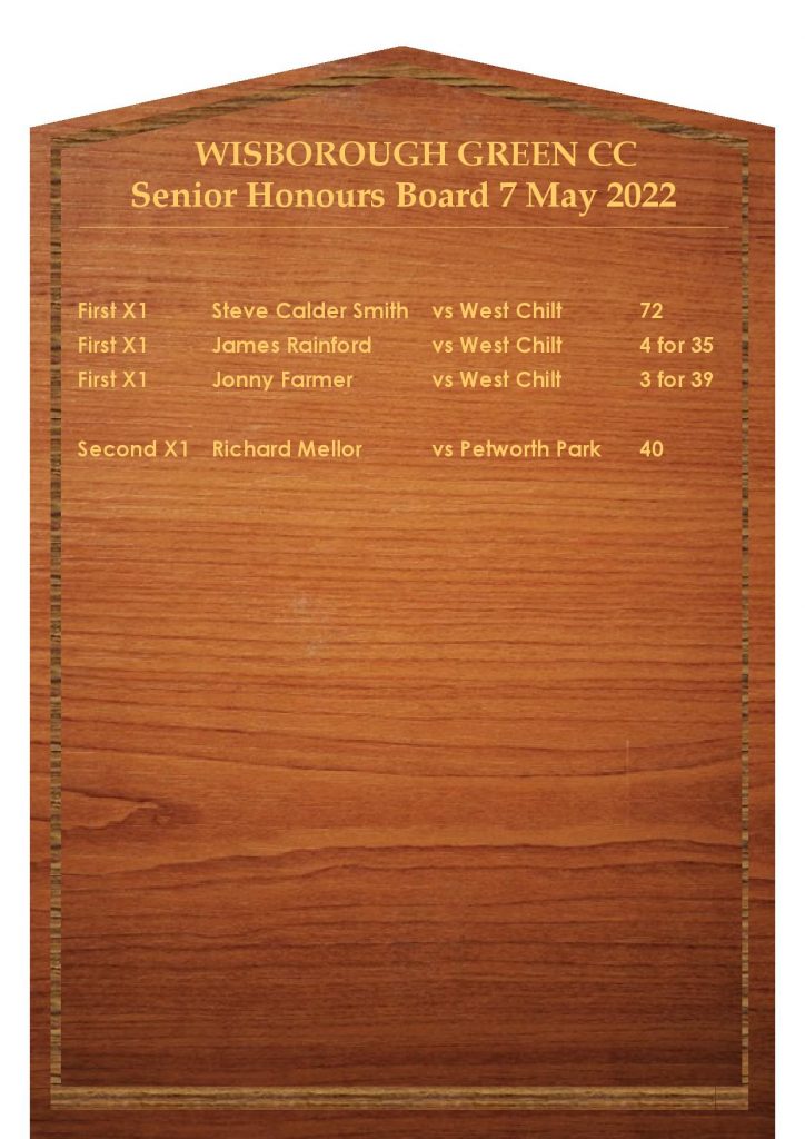 Below is a snapshot of the honours board for last week. Congratulations Josh for making it onto the board and keeping the Wisborough Green flag flying high.
