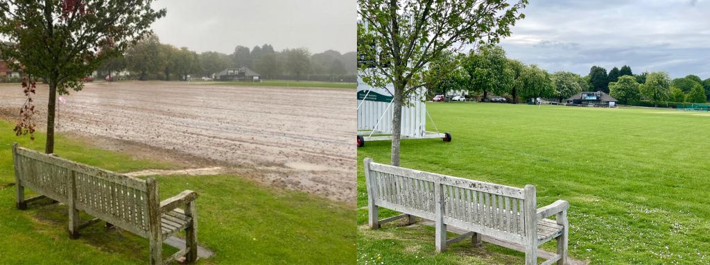 Our club cameraman Chris Marshall has managed to stitch together pictures of the Green while the refurbishments were being carried out in September last year compared to what the Green looks like now. What a difference in only a few months !