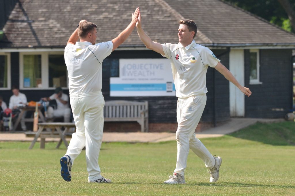 The opening bowlers were well backed up: William Andrews taking their dangerman caught again by Alex Martin for 29 runs.