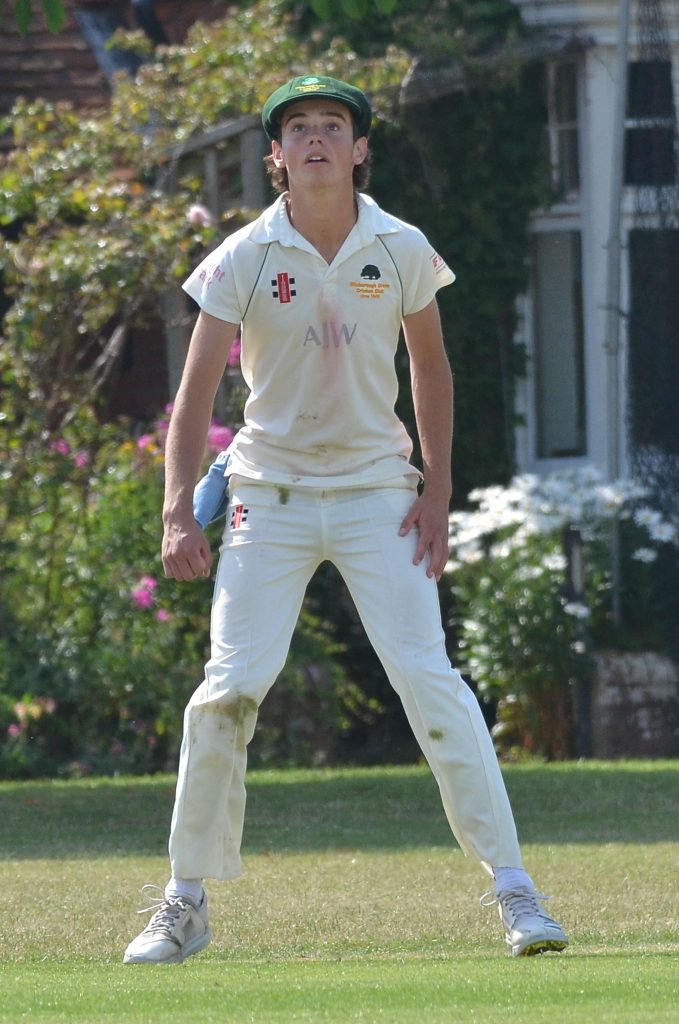 Our total of 220 in 35 overs looked competitive. Especially when Oscar Warmington steamed in and cartwheeled the stumps of 3 of their top 4. Seb Scrace bowled his off spin beautifully clean bowled their number 5. He looks a real find for the future. Raff Finn bowled very tidily and picked up two wickets. Josh Dixon and Harry Hunter bowled well for no reward, while Jackson McCullagh came on late in the day and picked up a caught behind.