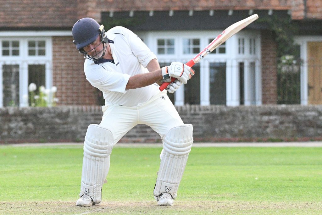 Chris hung around with Tim Dent. A mixture of dot balls and boundaries, it wasn’t easy to hit the required run rate, which began to build. Hugo March (20), Ollie Warmington (22) and his father Rupert (7) helped move the score along, but we were always behind the pace. Until Ash Perry walked to the crease. Ash started in 5th gear and crashed 47 not out in the remaining few overs. Along with Leon Kilford (13), he brought Wisborough’s total to a respectable 195.