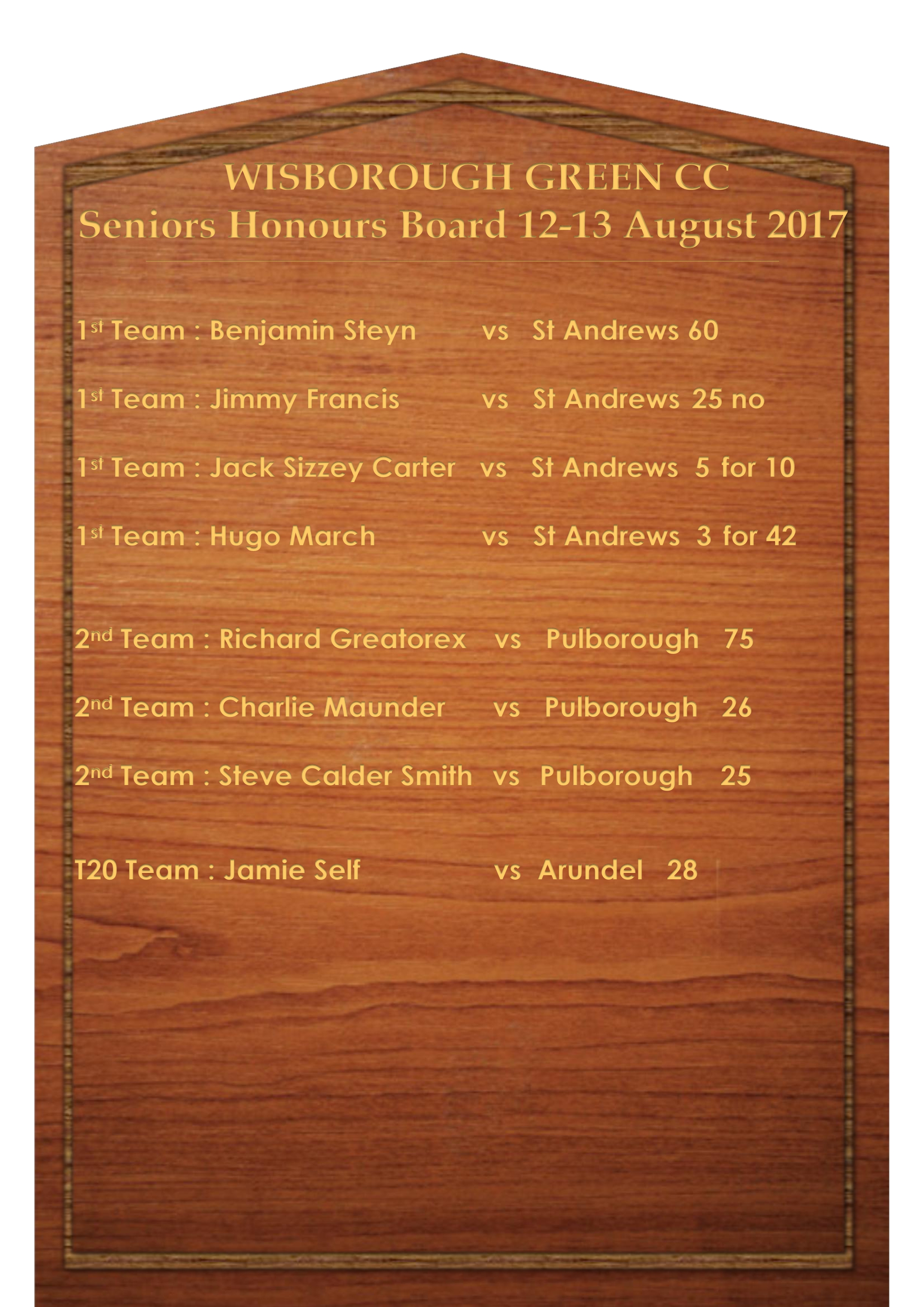 Congratulations to all the players who made it onto the honours board this week.