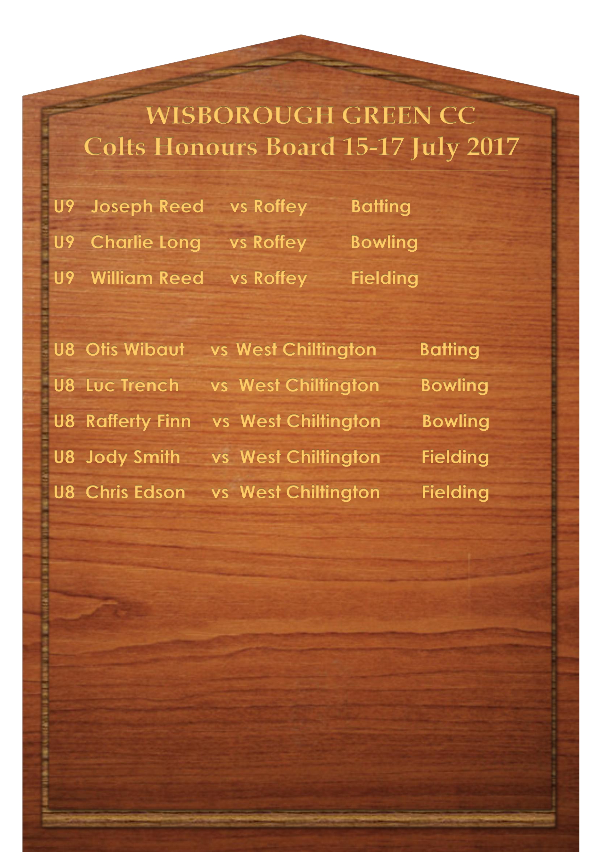 The Wisborough Green Colts did a superb job with the ball and fielding total as much as possible . Well done to Charlie, Joseph, Arthur and Dexter who were the joint highest wicket takers for Wisborough Green.