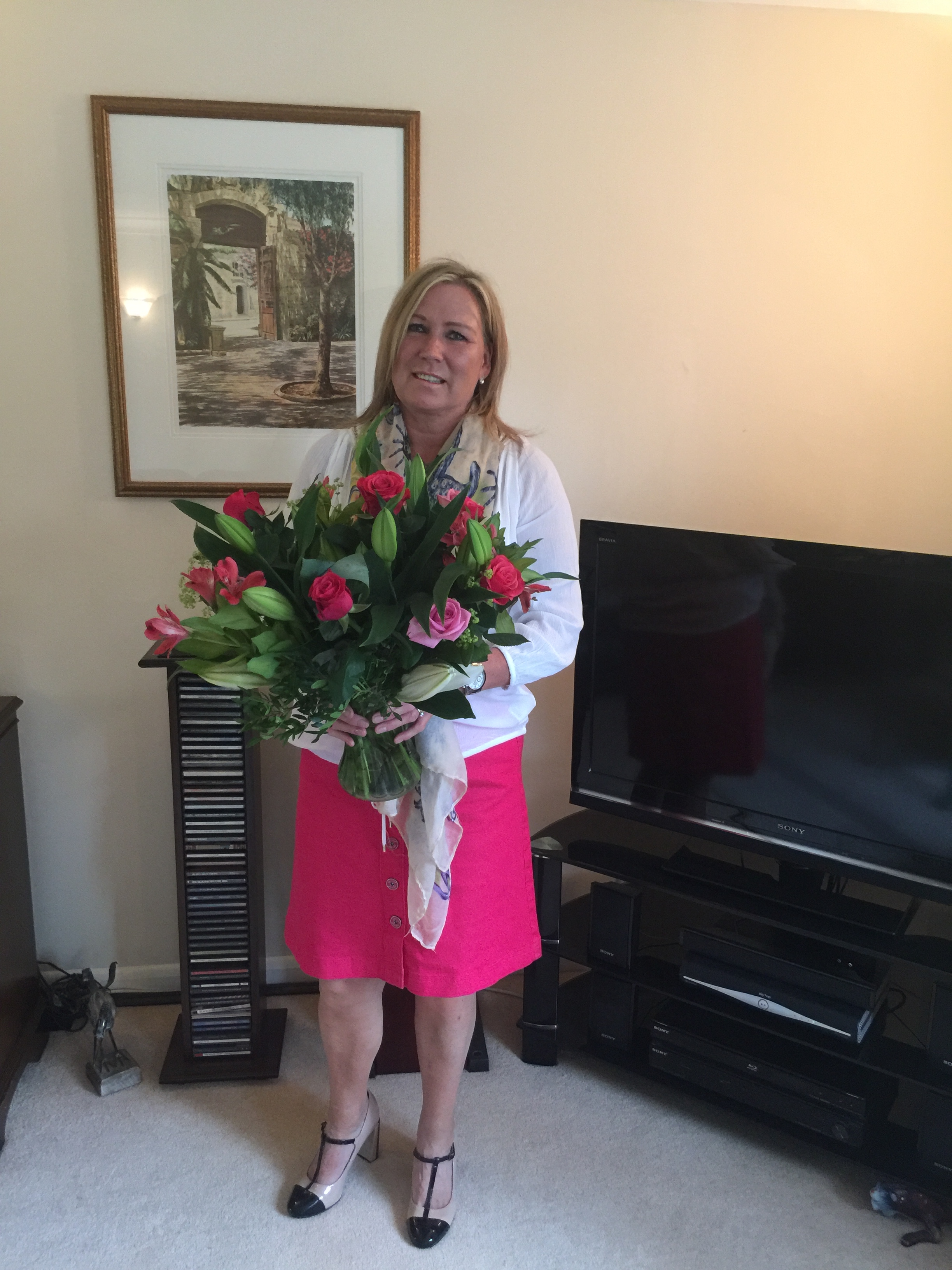 John’s fiancée Lena pictured below with a bunch of flowers from the club to say ‘Thank You’ for all her efforts
