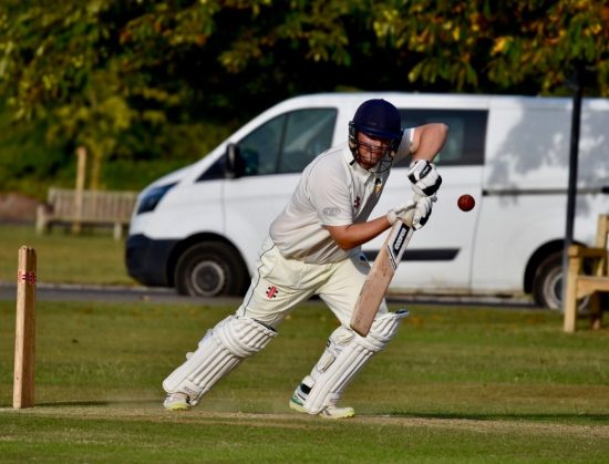 238 looked to be a useful total although, even on such a surface, it is a hard ground on which to limit scoring and we were certainly aware of the strength at the top of the Southwater order. Hard-hitting left-hander Nick Baker is the leading run-scorer in the division this season but could have been dismissed by the first ball of the second over, bowled by Ben Thatcher, Jamie Self just unable to hold on at long-off after it had initially seemed that he had pouched yet another catch. Reprieved, Baker scored 14 runs from the final three balls of the over, Ben struggling to attain a good rhythm running up a considerable slope into what was often a strong wind. Things didn’t improve for him in his second over, Alex Harding striking the first two balls straight for 6 and 4, before Ben gained a measure of control for the rest of his spell. From the other end, James Rainford, although threatening at times, was less effective than he has usually been this season, generally bowling a little too short. However, having seen him dropped by Hugo March at cover a few balls before, he did claim the important wicket of Baker in his third over, caught behind by D.J., although the batsman’s slow departure from the crease suggested he thought it had just struck his leg.