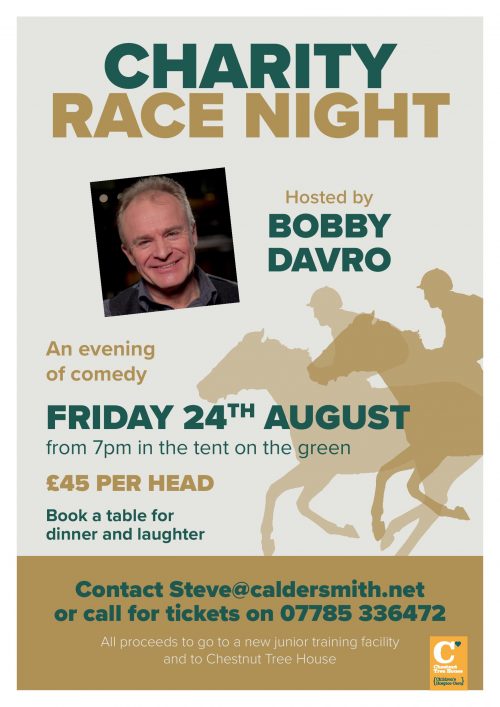 We are privileged to have well known comedian Bobby Davro who will host and compere the evening as well as introducing the race card and coordinating all the activities that will take place in the big marquee on the green.