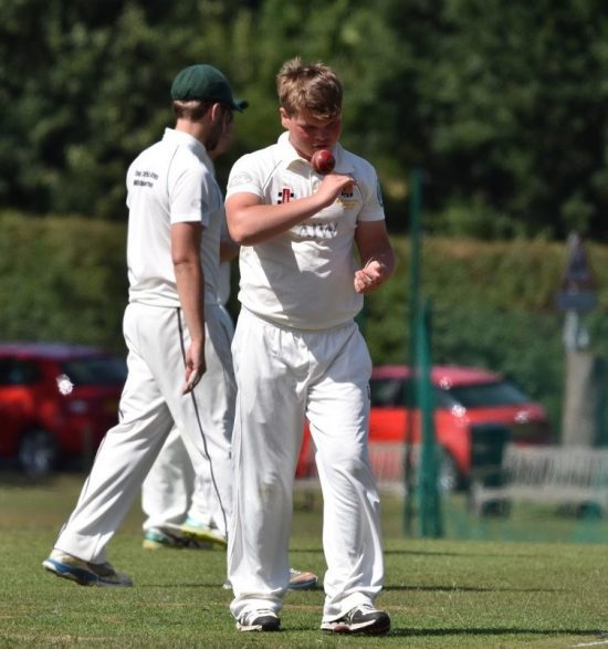 238 looked to be a useful total although, even on such a surface, it is a hard ground on which to limit scoring and we were certainly aware of the strength at the top of the Southwater order. Hard-hitting left-hander Nick Baker is the leading run-scorer in the division this season but could have been dismissed by the first ball of the second over, bowled by Ben Thatcher, Jamie Self just unable to hold on at long-off after it had initially seemed that he had pouched yet another catch. Reprieved, Baker scored 14 runs from the final three balls of the over, Ben struggling to attain a good rhythm running up a considerable slope into what was often a strong wind. Things didn’t improve for him in his second over, Alex Harding striking the first two balls straight for 6 and 4, before Ben gained a measure of control for the rest of his spell. From the other end, James Rainford, although threatening at times, was less effective than he has usually been this season, generally bowling a little too short. However, having seen him dropped by Hugo March at cover a few balls before, he did claim the important wicket of Baker in his third over, caught behind by D.J., although the batsman’s slow departure from the crease suggested he thought it had just struck his leg.
