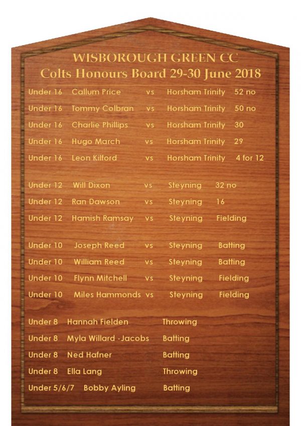 Congratulations to all the players who made it onto the Honours boards this week. Its great to see no fewer than 17 colts recognised for their contributions this week . Well done !