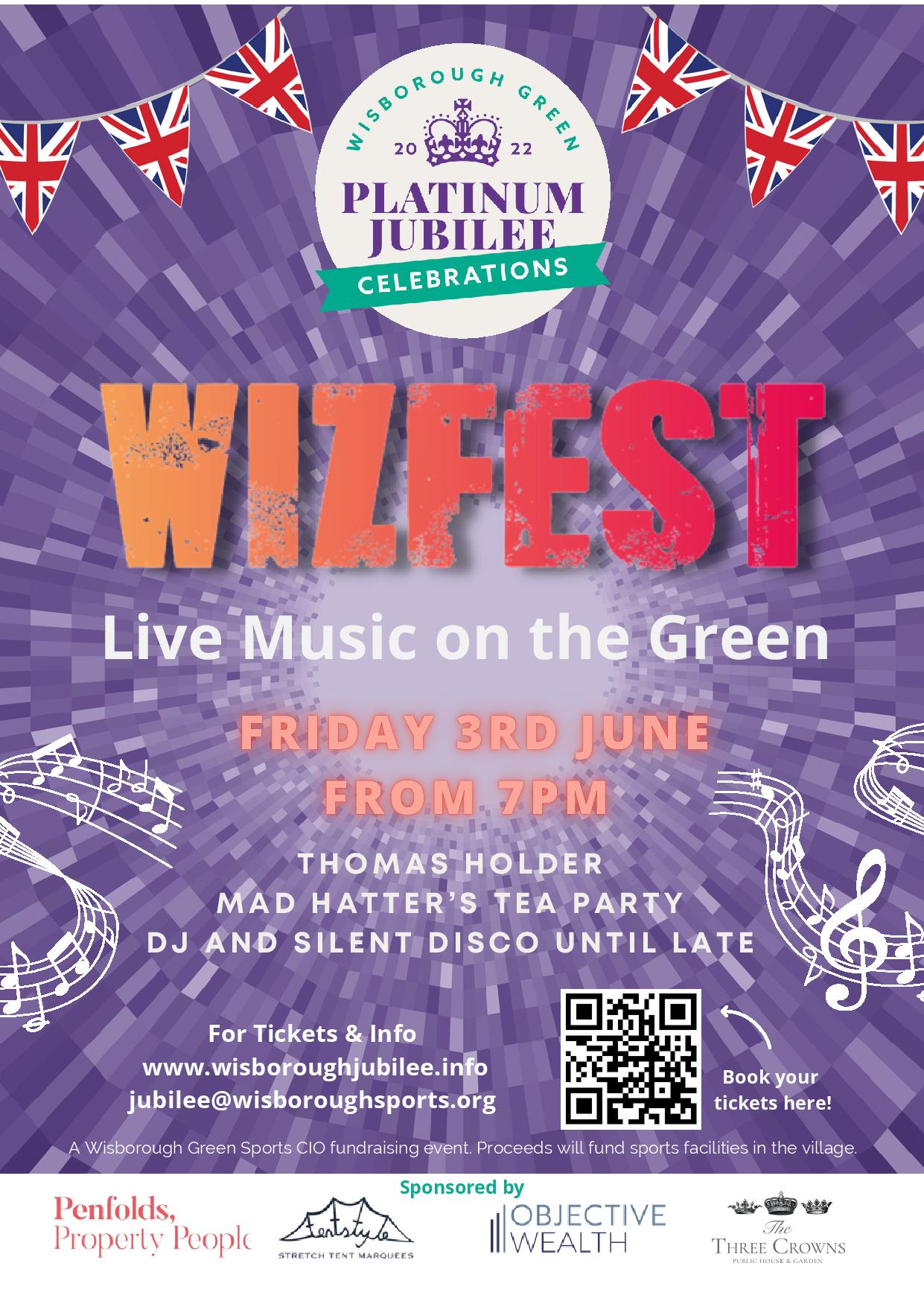 Wizfest brings together all ages of the village from 13 upwards for an exciting evening of entertainment, food and drink. We welcome Pizza Trullo and Ox Burger for you to enjoy while listening to local bands. Brook Saunders has been busy brewing with a Jubilee special of Royal Blood Pale Ale from Wisborough Green’s very own Brolly Brewing.