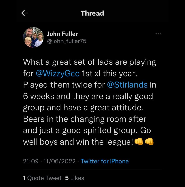 Final mention to Callum Price for some excellent fielding and credit for his attitude throughout.