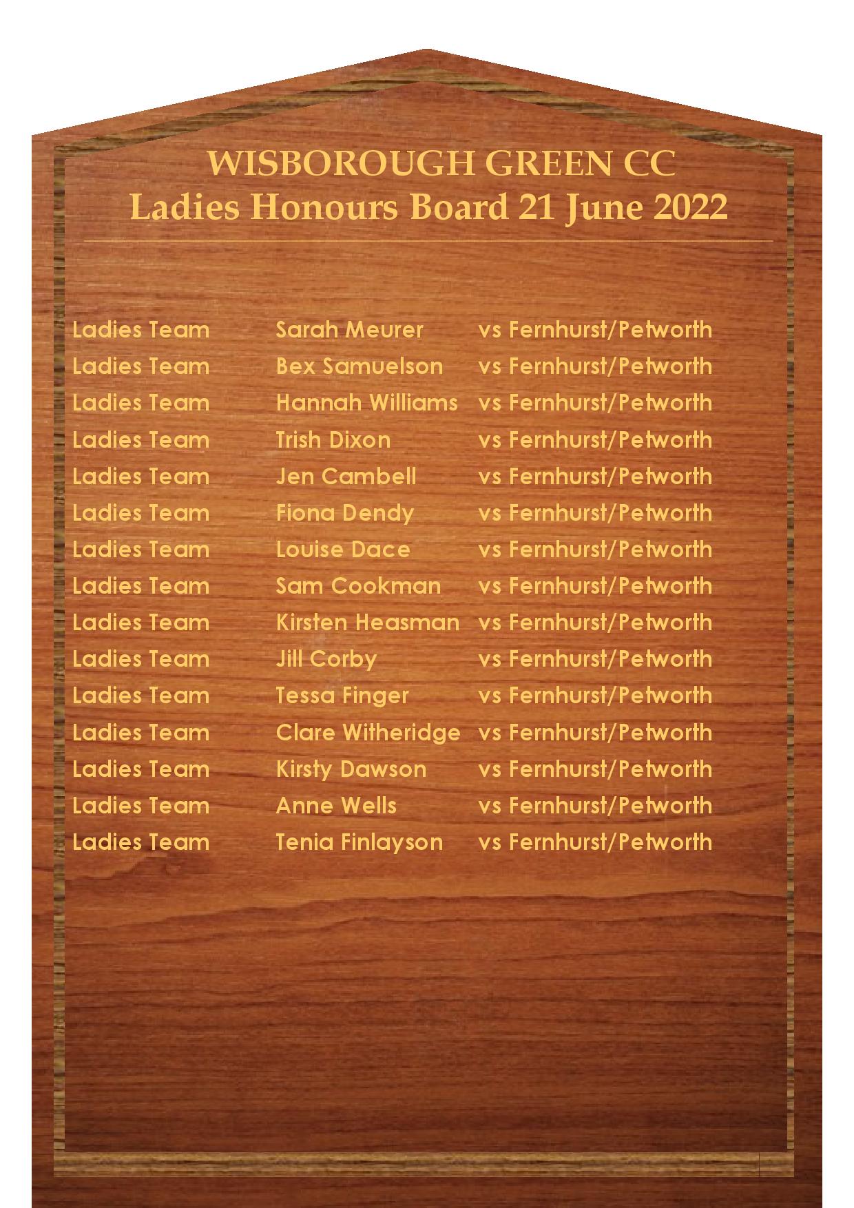 It was now Wisborough Greens’ turn to field and it was fair to say the bowling was one of the areas we were keen to ensure we delivered on and we did. Special mention to Hannah for two wickets and to Trish who took two brilliant catches. The boundary fielders were light of foot and quick to get the ball back to the wicketkeeper. Wicket-keeper Sarah Meurer was a safe pair of hands behind the stumps ensuring we didnt concede any runs behind the wicket . Fernhurst/Petworth ended their innings on 310.