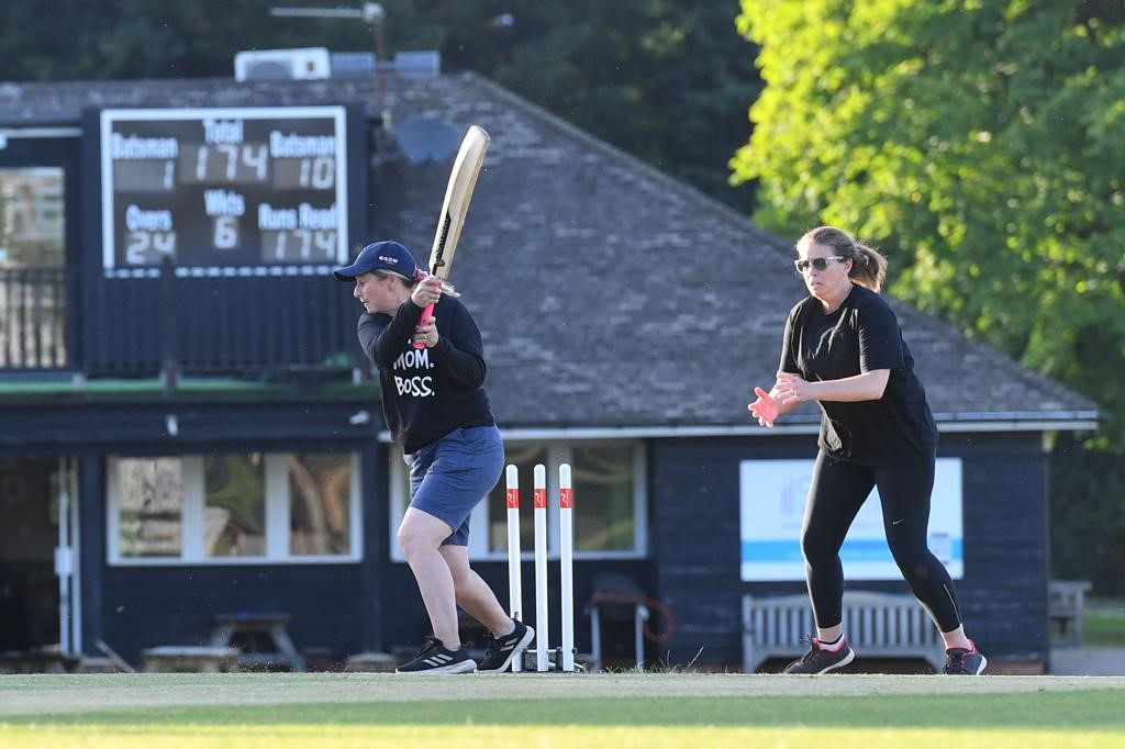 First into bat were Hannah Williams and Jill Corby who together scored 24 runs in their 4 overs as a pair with no wides and no no balls bowled. The second pair to play was Kirsty Dawson and Captain Sarah Meurer who took 24 runs and faced 7 wides from the opposition. The third pair was Jen Cambell and Bex Samuelson who between them had the highest scoring 4 overs achieving 34 runs and facing 4 wides. Bex was also the highest-scoring batter of the game making 24 runs – great job Bex. Tessa Finger and Ann Wells scored 7 runs but did not get much of a chance to hit the ball as they faced 6 no balls and 10 wides! Finally, Claire Witheridge and Trish Dixon batted the final four overs and scored 9 runs and faced 8 wides and 2 no balls. The final score in this pair’s format was 358 runs to Wisborough Green.
