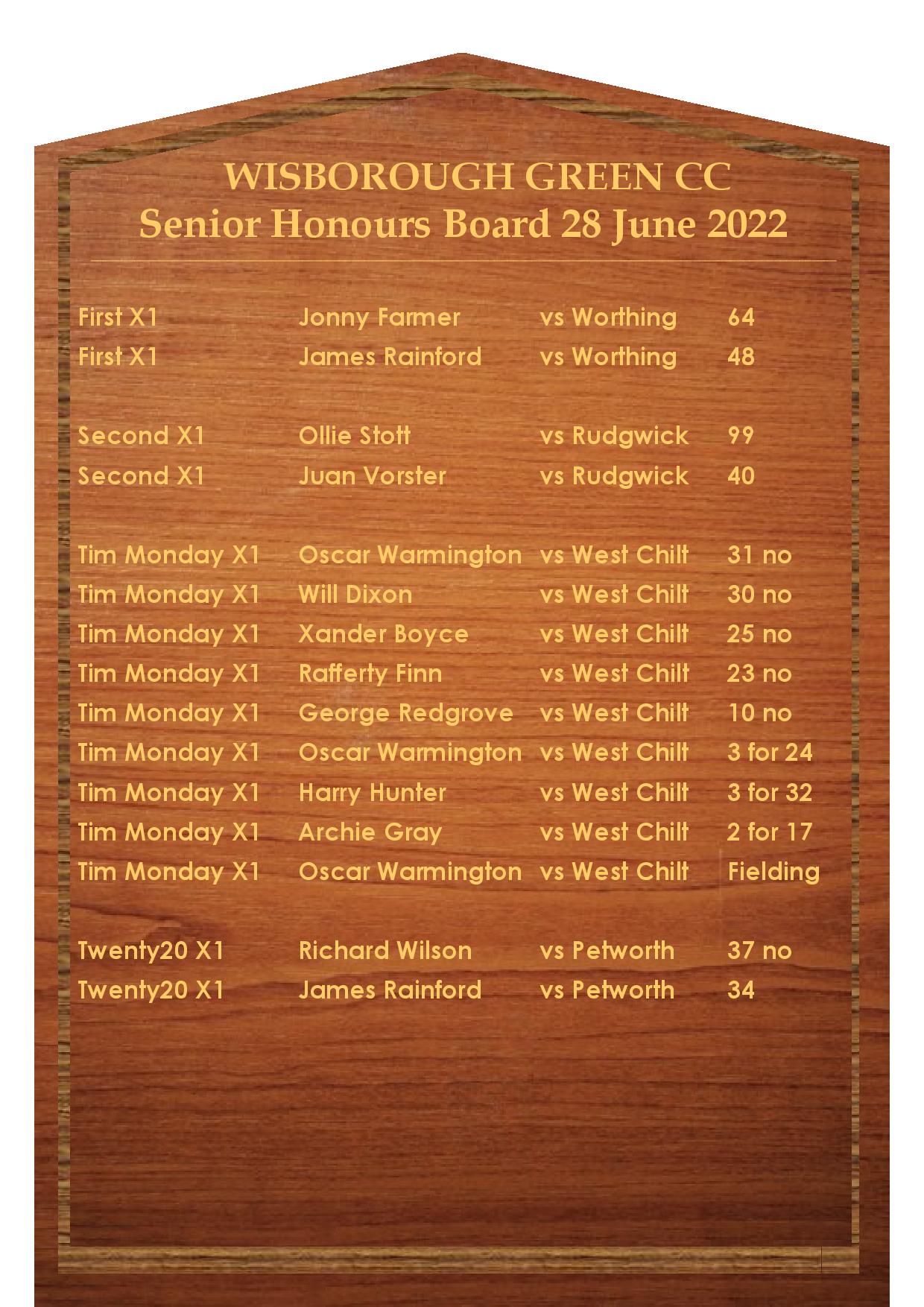 • Batting first Wisborough Green start fast with some great striking from Richard Wilson, who quickly reached 37 before retiring, ably assisted by Ran Dawson.