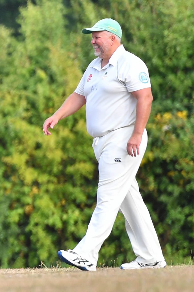 Enter the main event. James Sadler strode out to the middle, Botham-esque like a gladiator at The Colosseum. An illustrious career behind him, his only innings in recent years was a fine knock on Wittering beach, that ended when the ball was lost at sea. A few swing and misses while he adjusted from sand to a grass wicket, and then he was off. Rolling back the years, Sadler caressed, stroked and hoiked the ball past the awestruck fielders. Still nimble on his feet, he was eventually stumped for 27, so far out of his ground he’d nearly crossed with the non striker.