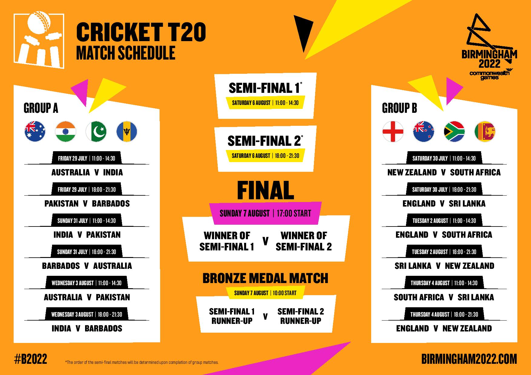 The Commonwealth Games T20 semi finals and finals will be live streamed on the BBC channels on Saturday and Sunday. Please see the match schedule below and click here for the BBC Commonwealth Games page for more information
