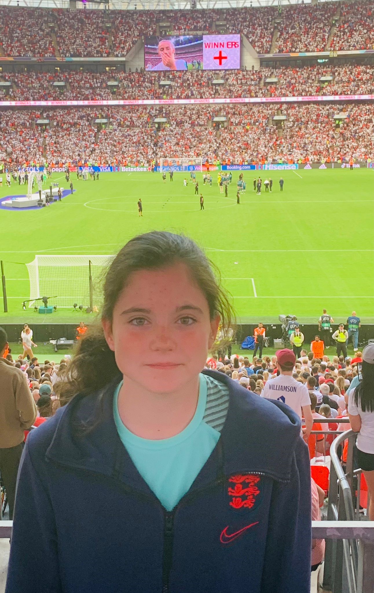 Whilst most of us watched the Ladies Euros final on our TV screens on Sunday, one of our under 15 players Jasmin Johnston-Jones was lucky enough to be there in person. Jasmin, who is an accomplished footballer herself and has trained with Brighton and Chelsea, was a flag bearer for the England games at the Brighton stadium.