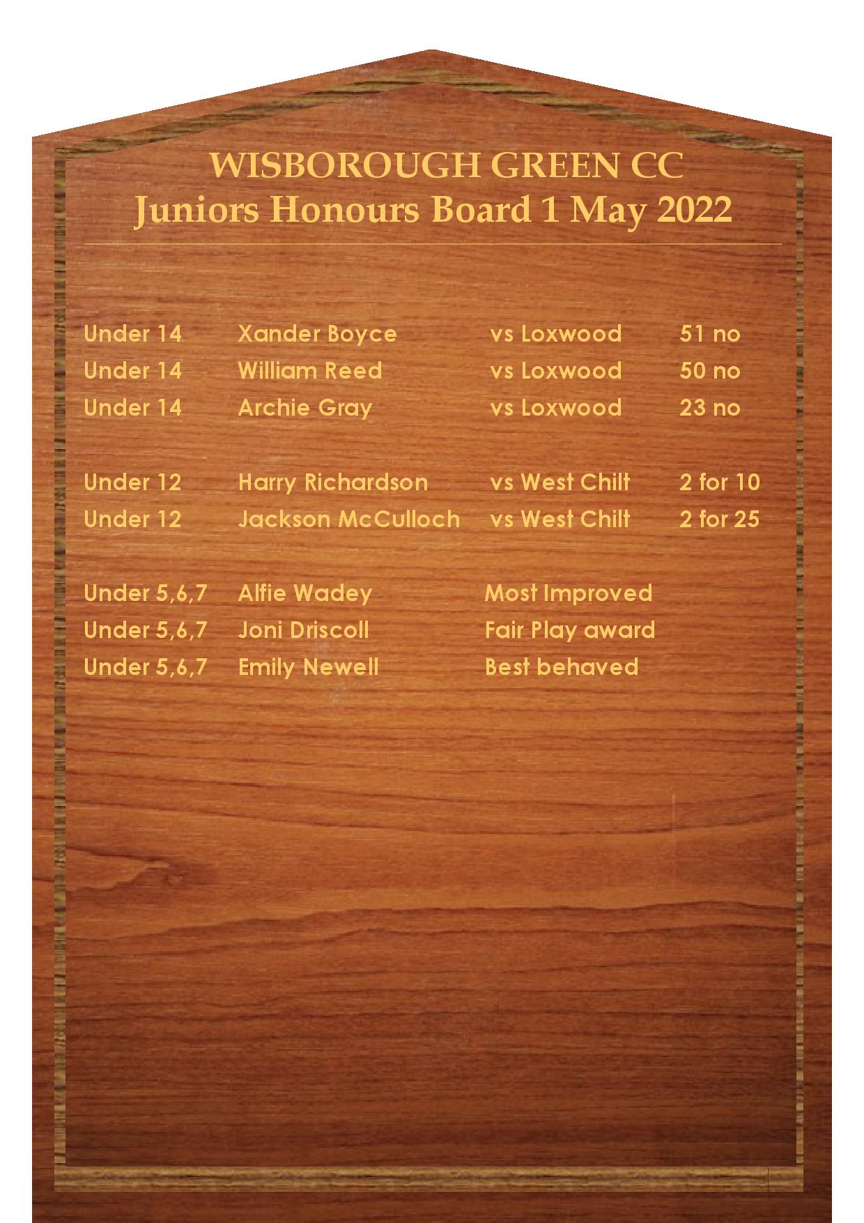 Every week we recognise some of the top achievements at the club and publish the names of the players on our honours boards. Congratulations to all those who feature on this week’s boards.
