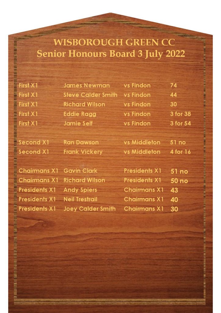 M(achine) of the match was a close call. James Newman in particular would normally get the award for his 77 and two catches, but as it’s the Presidents weekend we shall don the cap to him for a well played supporting roll, and fielding that at times almost took his head off, putting his body on the line.