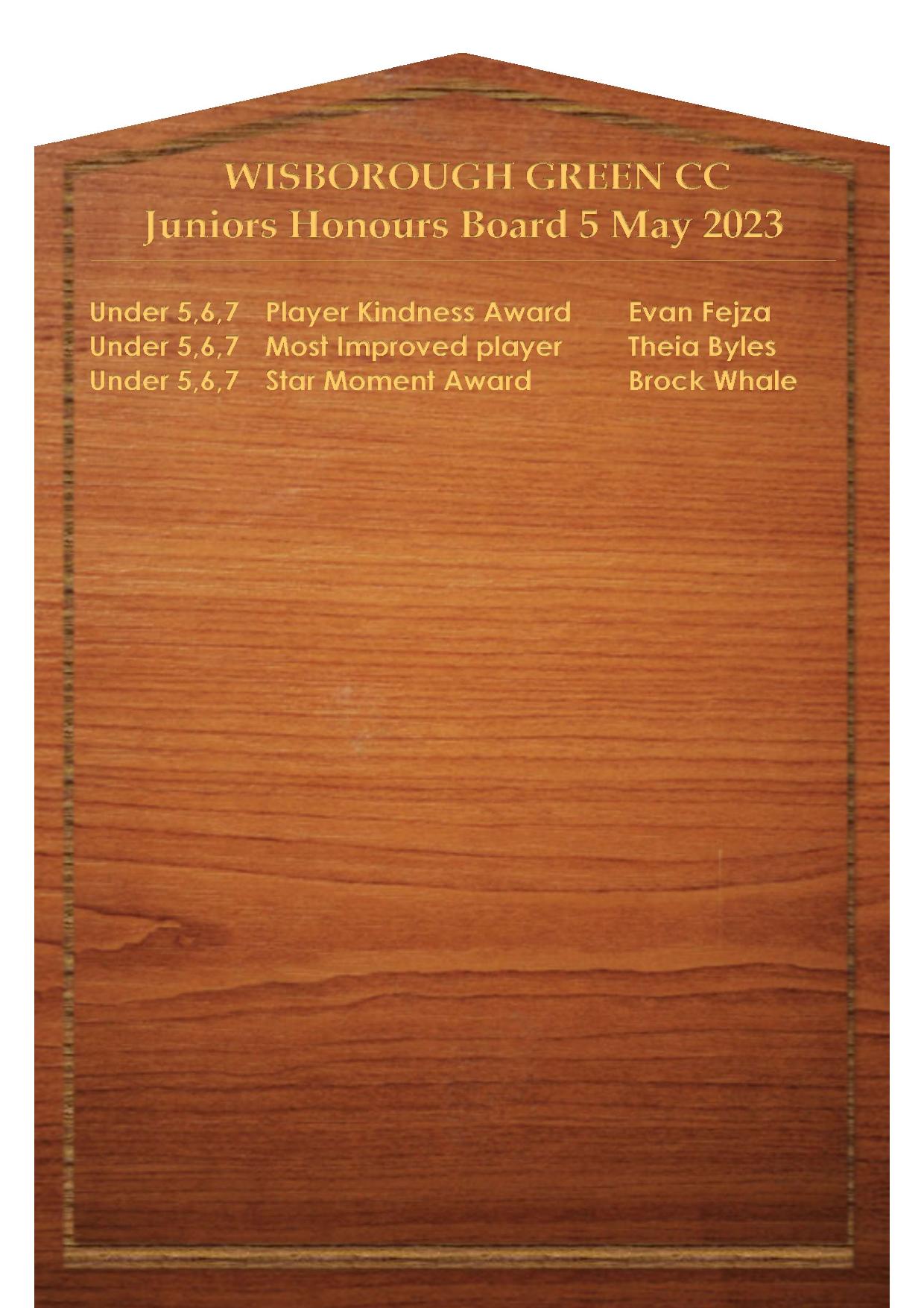 Congratulations to our under 5,6 and 7 players who made it onto the Honours Board this week and have it all to themselves. Well done to all of you !