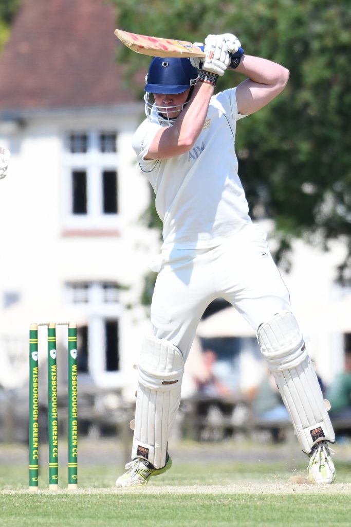 A very strong start from Raff Finn and George Redgrove saw Wisborough race to 37 for no loss from 3 overs against some accurate bowling. Raff then smashed a six and had to retire on 33 from 22 balls after a marvellous knock which also included 6 fours. Wisborough were looking on track for a big score as George R (perhaps unadvisedly for the superstitious amongst us) mentioned to Jon Finn at umpire.