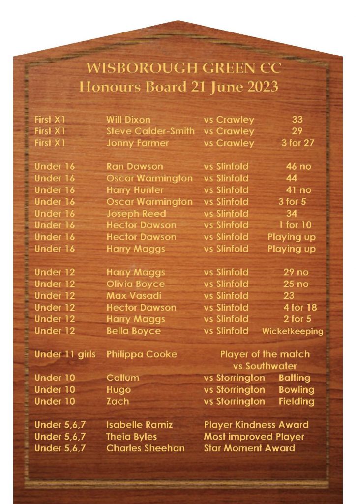 A very full Honours board this week which includes a set of twins and two players who get three mentions on the board. We also have an 8 year old player who played for Girls under 11 team nominated as player of the match by the opposition. Well done Philippa ! Congratulations to all who made it onto the board this week.
