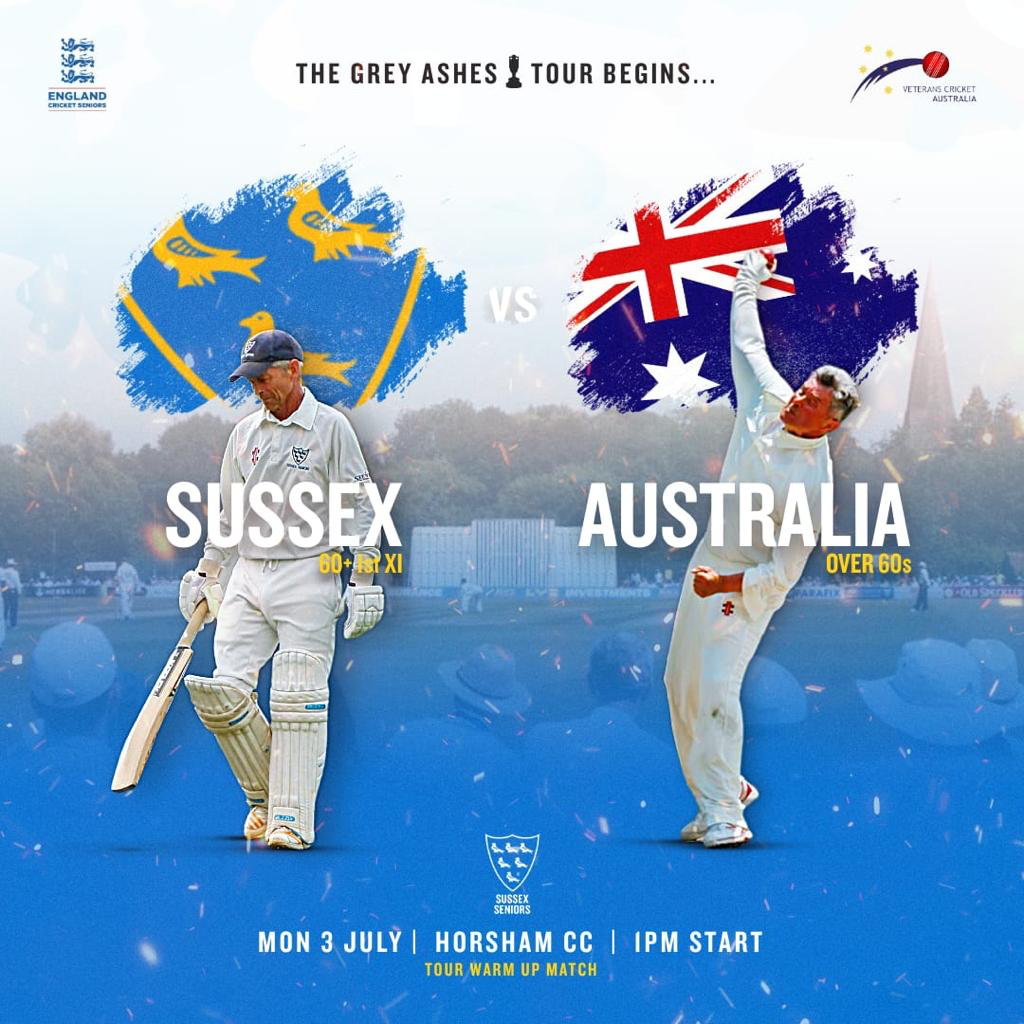 Everyone is no doubt following the Ashes quite closely, but many may not be aware that the Australian over 60’s team is also in town and will be competing in five one-day international matches against the England over 60’s . The Australians first match will be a warmup game against Sussex Over 60’s who were runners up in the Over 60’s national County championship last year. The game will be played at Horsham on Monday 3 July at 1pm, so please go along and enjoy some top quality cricket against our arch rivals.