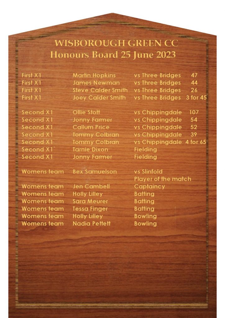 We’ve got two rather full Honours Boards this week – congratulations to all those who made it onto the Boards this week
