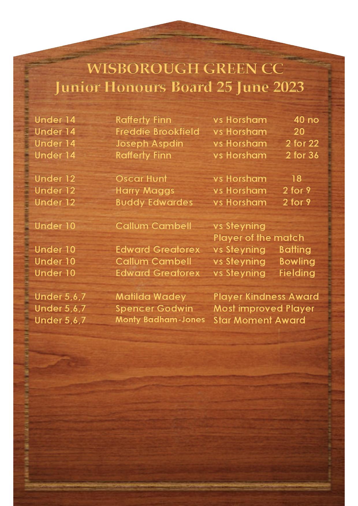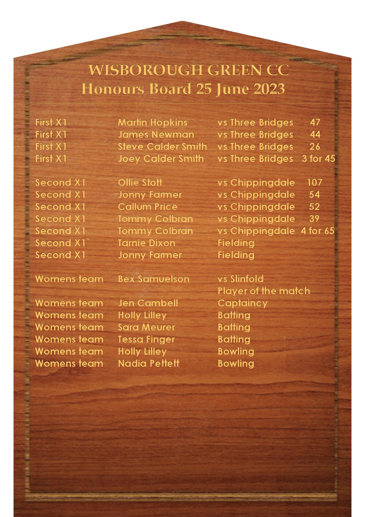 We’ve got two rather full Honours Boards this week – congratulations to all those who made it onto the Boards this week