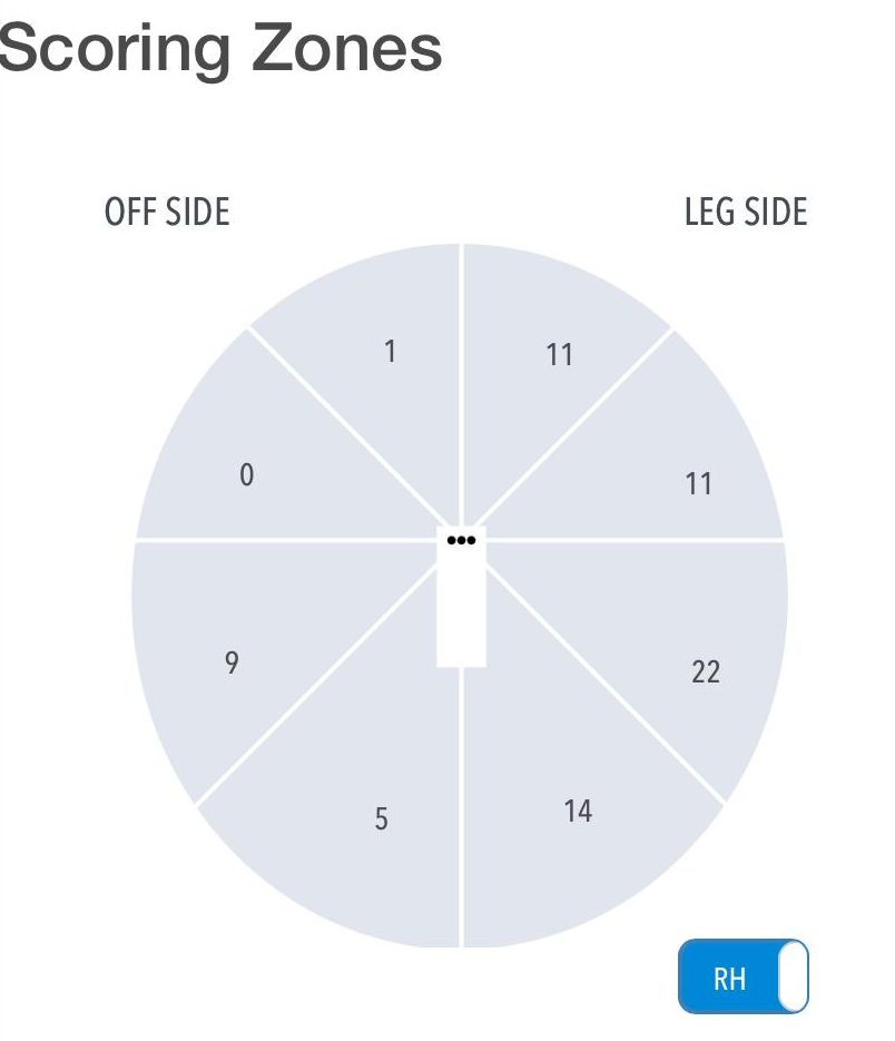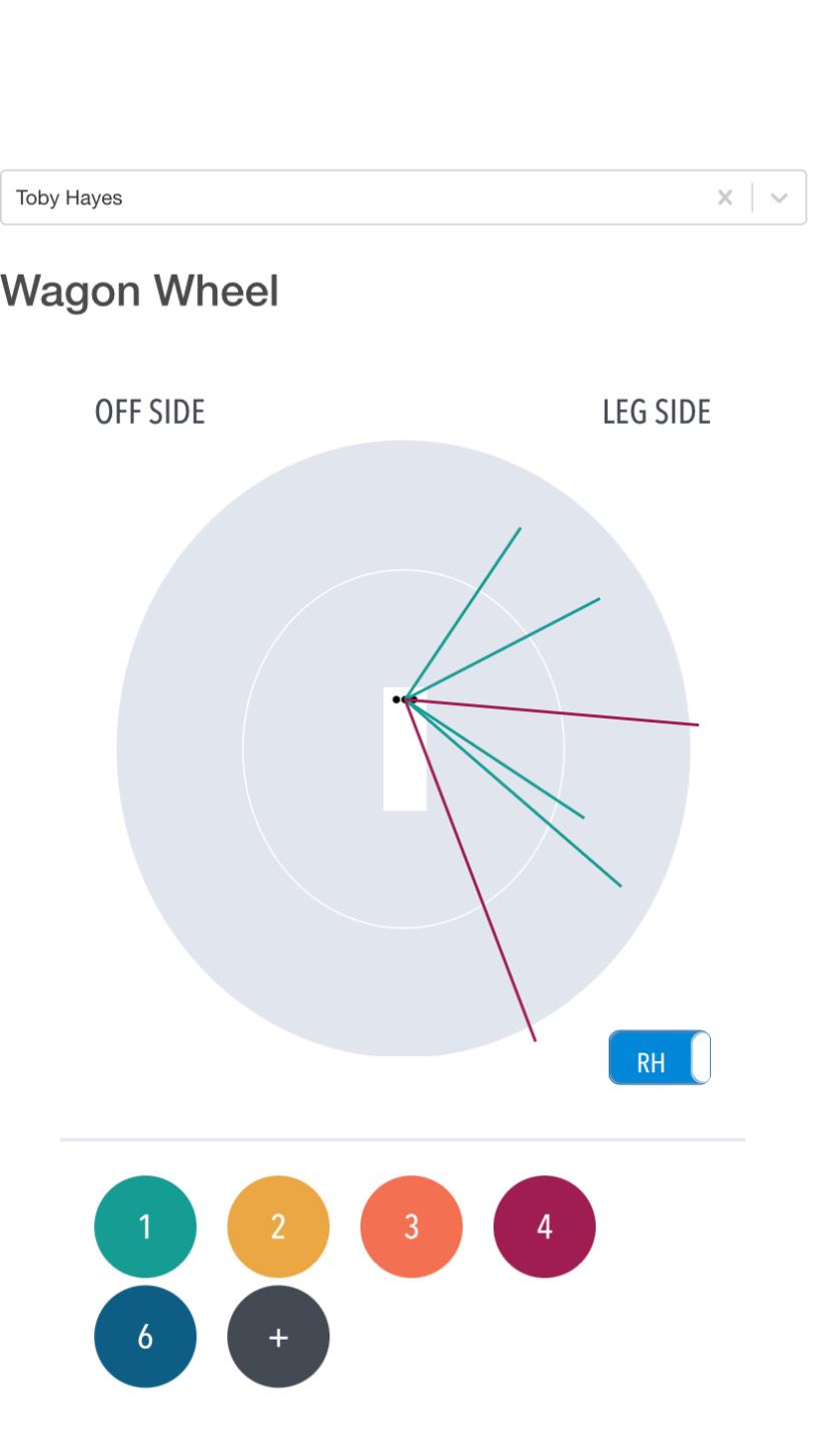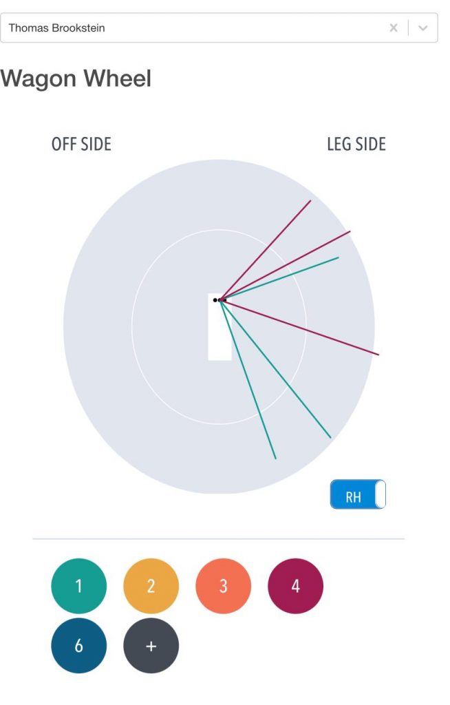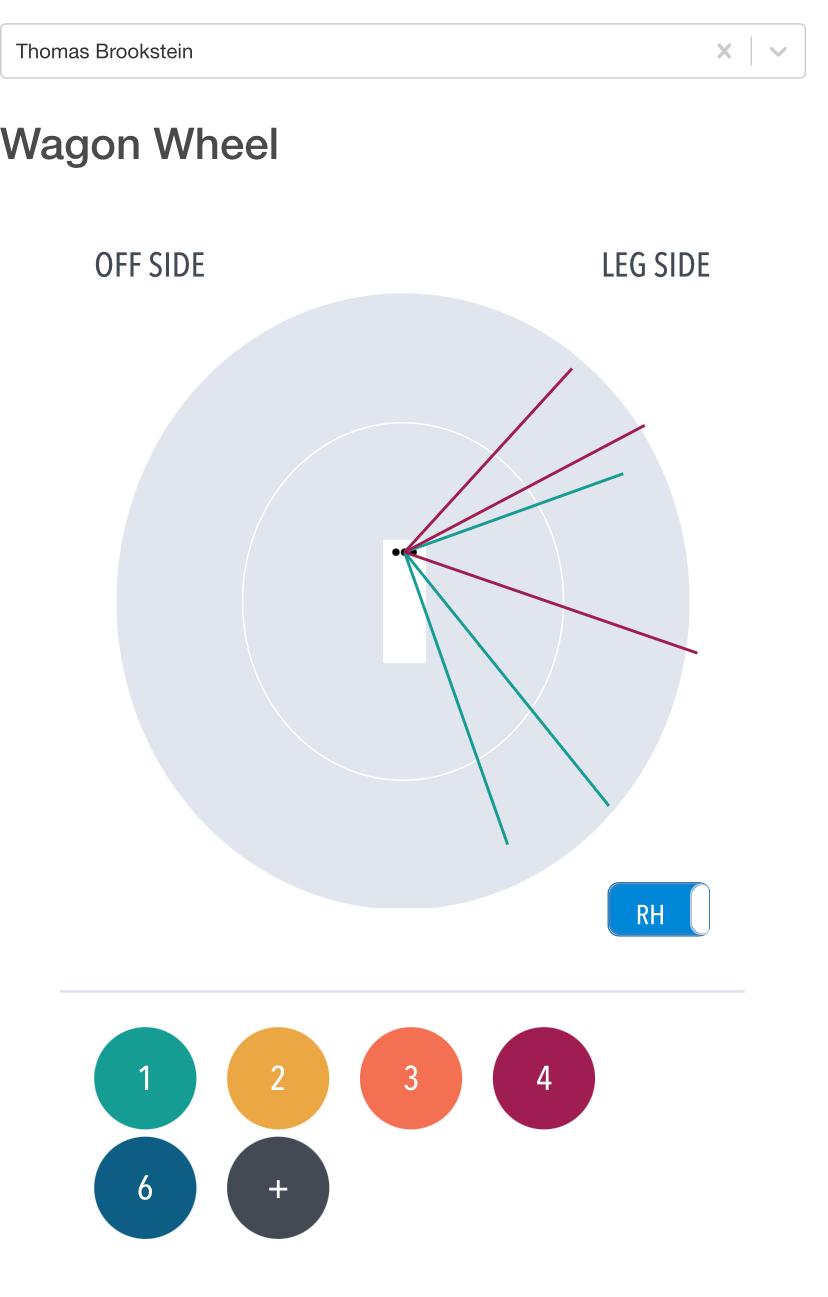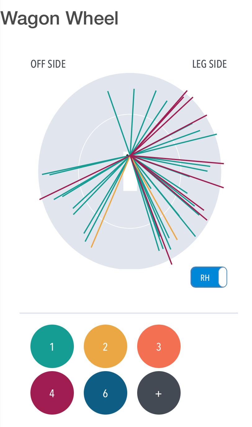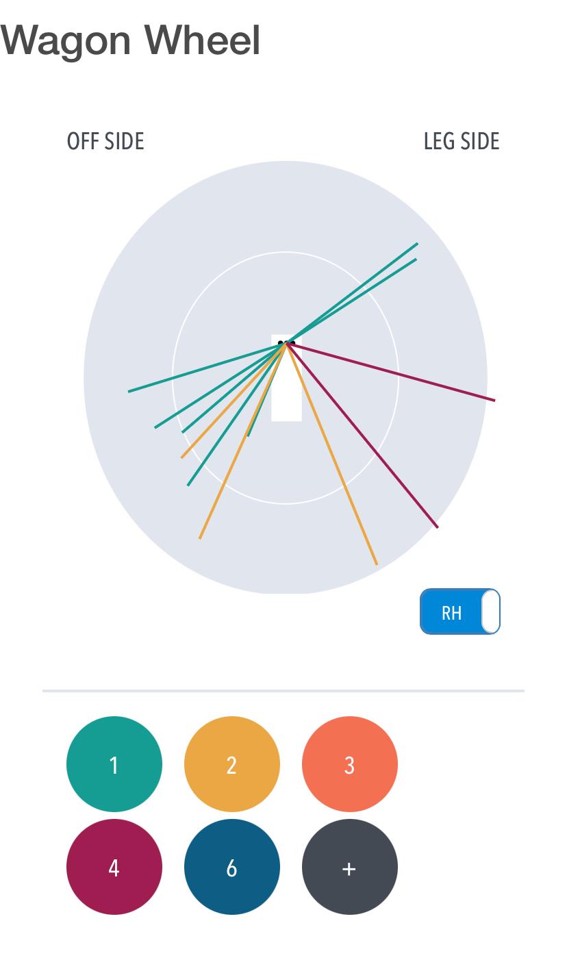 Wagon wheels – ie where did the players from each side hit the ball and how many did they score off the shot ?