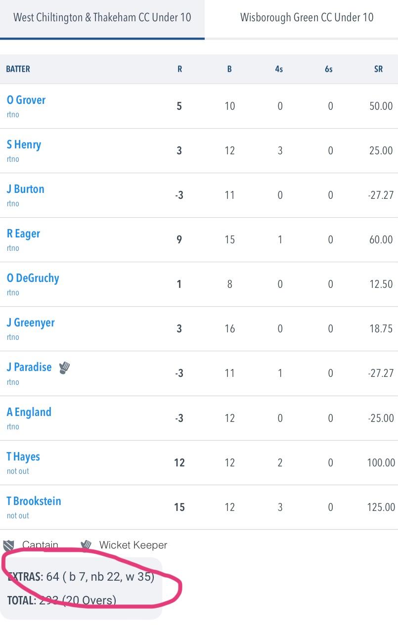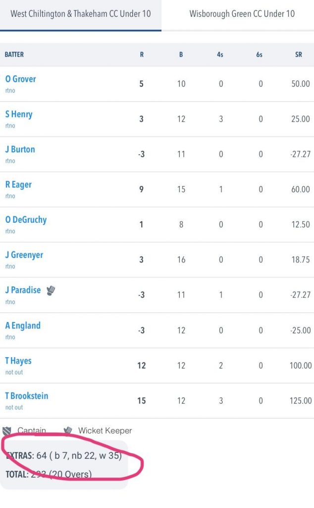 How many wides (w) and no balls (nb) did bowlers from each side give away ? What does this tell us about our bowling ?