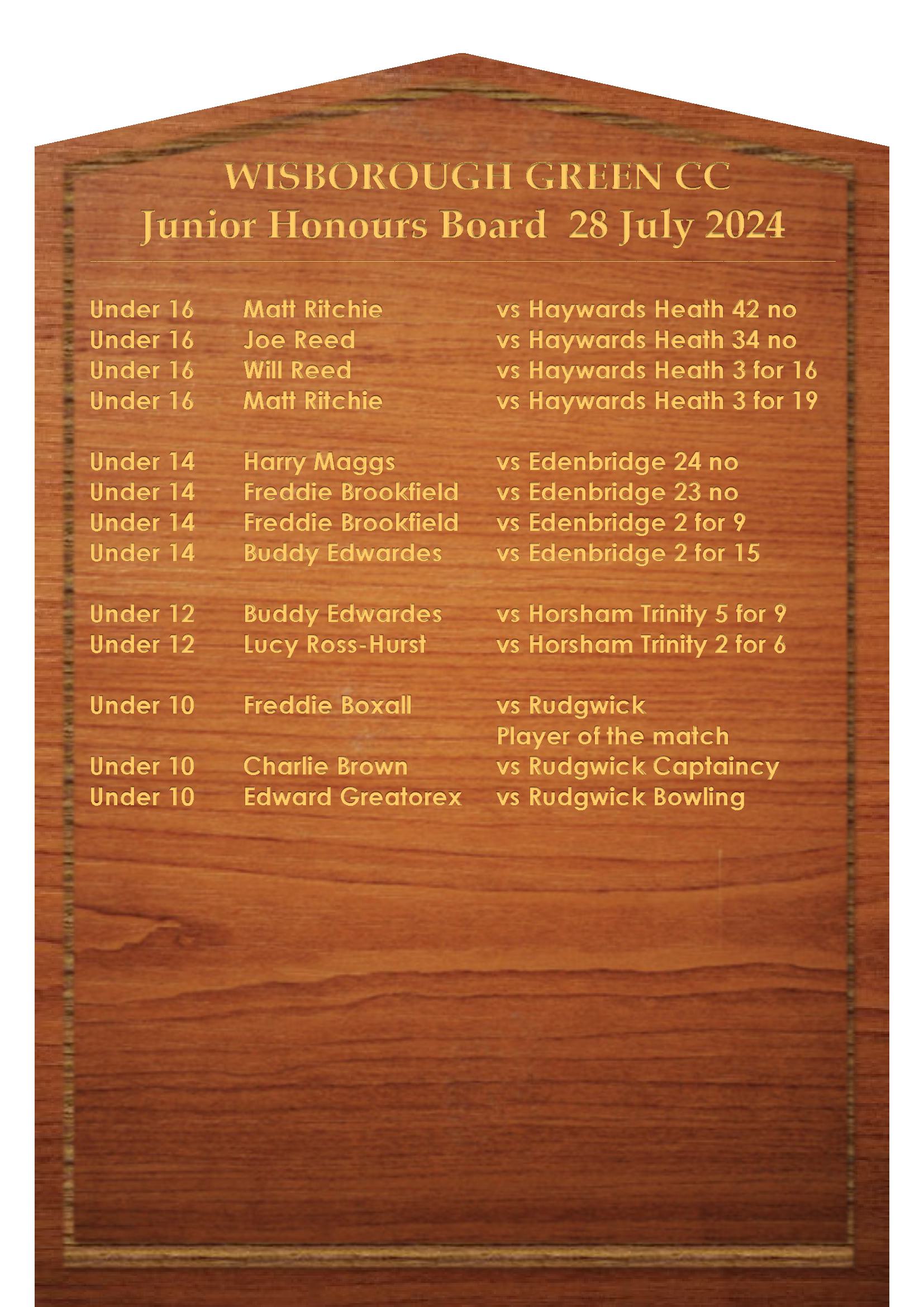 Congratulations to all the players who feature on our Honours Boards this week