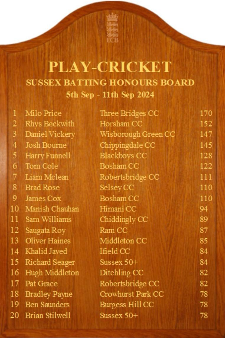Hot on the heels of last week’s entries onto the County wide Batting Honours board – we have another fantastic performance to celebrate this week ….