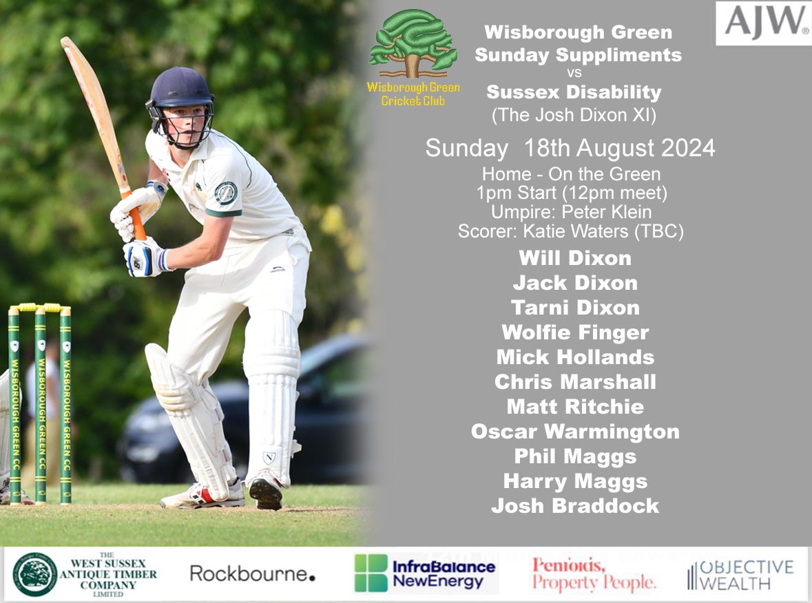 - Sunday X1 vs Sussex Disability X1 at 1pm
