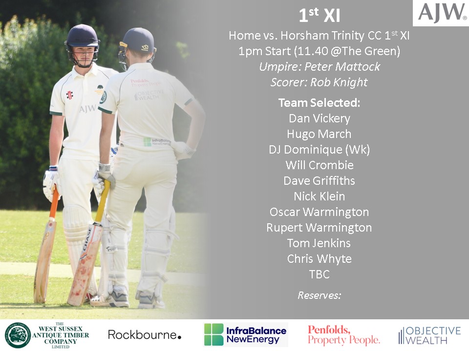 - First X1 are at home to Horsham Trinity on Saturday at 1pm