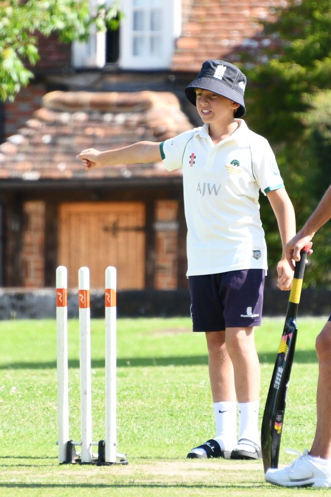 After 6 overs the score was a bruising 14 -6 for the Crawley Eagles side. Fielding was ultra tight again by the whole team and Lucy continued her consistent wicket taking in over 9, closely followed by a beauty from Archie caught by Harry Maggs. William Bunce opened over 11 with a wicket on the first ball totalling 9 leaving the fielders to take the final wicket with a well coordinate run out initiated by Harry Maggs! Crawley’s innings closed 37 all out after only 12.3 overs! Highly convincing play in the field and by all bowlers.