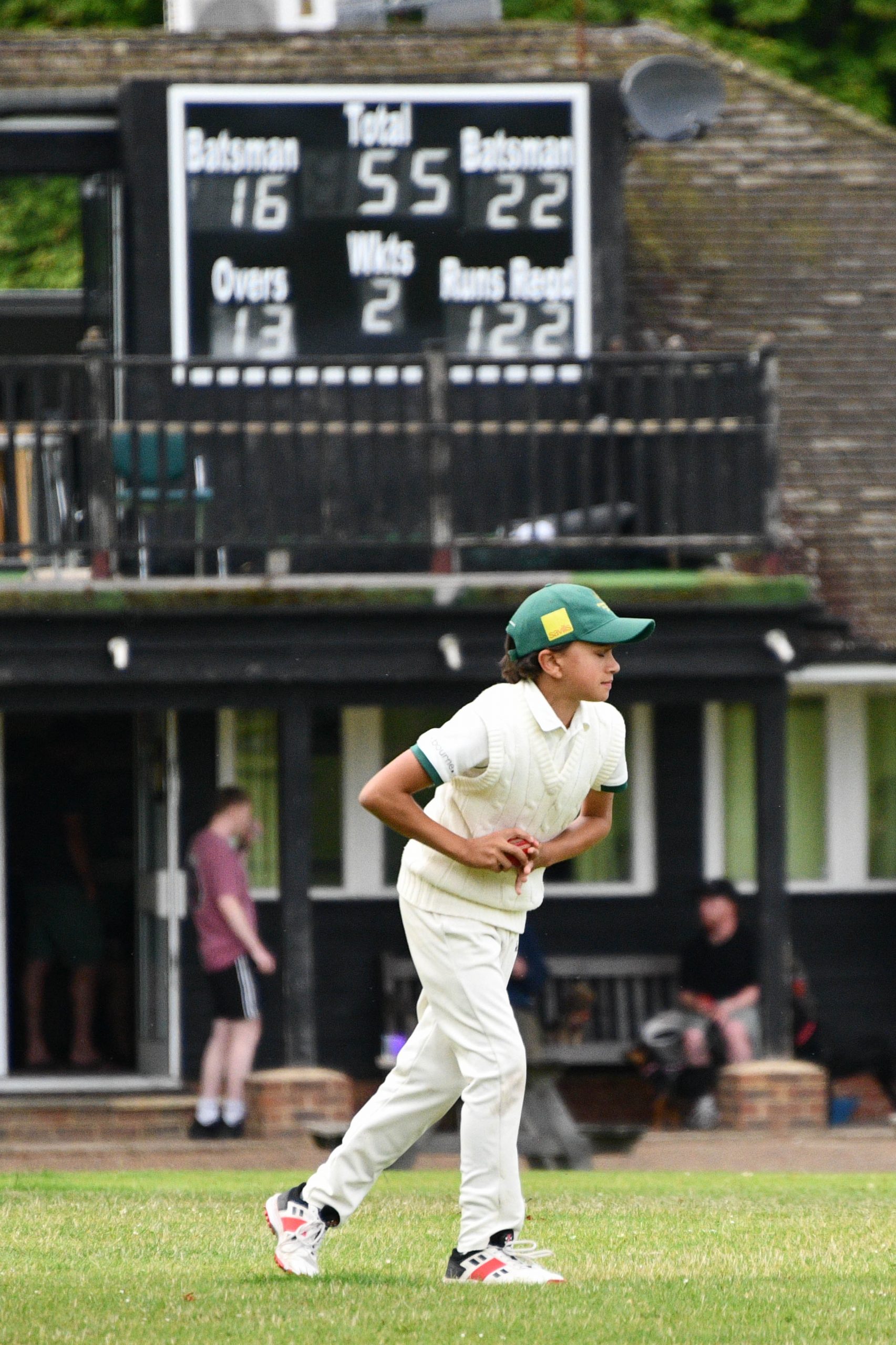 The bowlers all stuck to their task and were supported by some very committed fielding, Bella and Olivia bowled with great economy and Josh picked up two wickets. There were two pieces of individual brilliance in the field, Will Spiers taking a great reaction catch at keeper and Archie with a direct hit for a runout when he only had one stump to aim at.