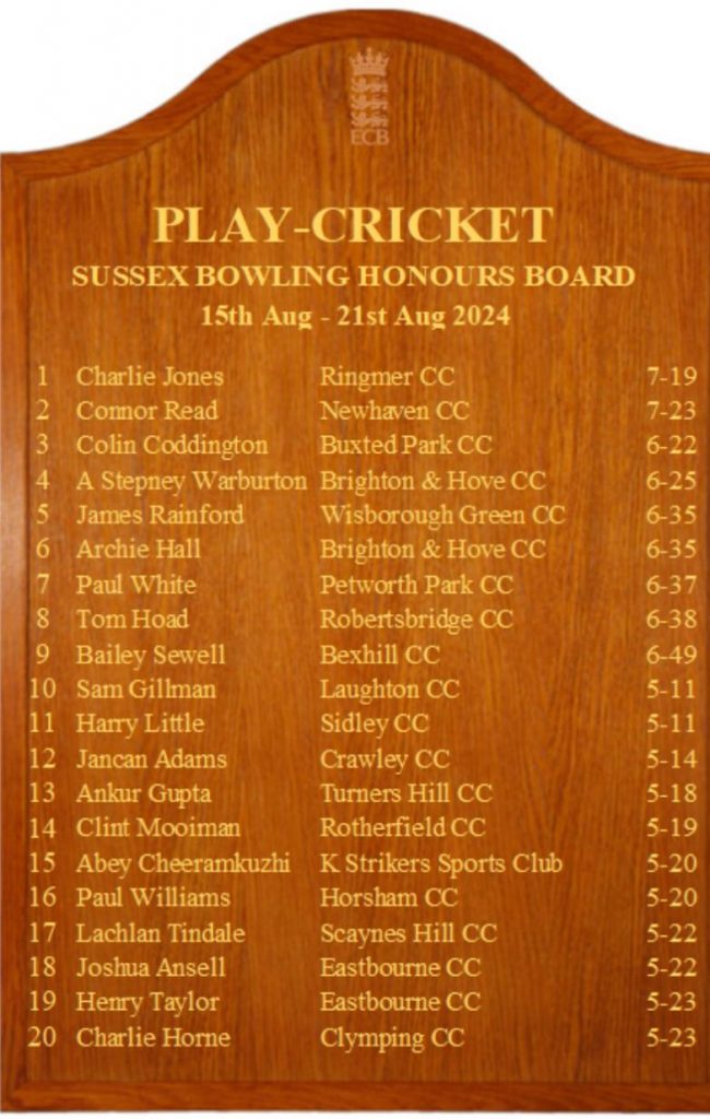 Its always special to see a Wisborough Green name on the County Honours Board. Congratulations James Rainford