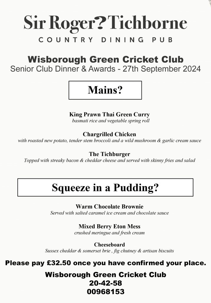 The Seniors End of Season Dinner will be taking place on Friday 27 September at the The Sir Roger Tichborne pub in Alfold – please make a note in your diaries. Places are limited so please book early.