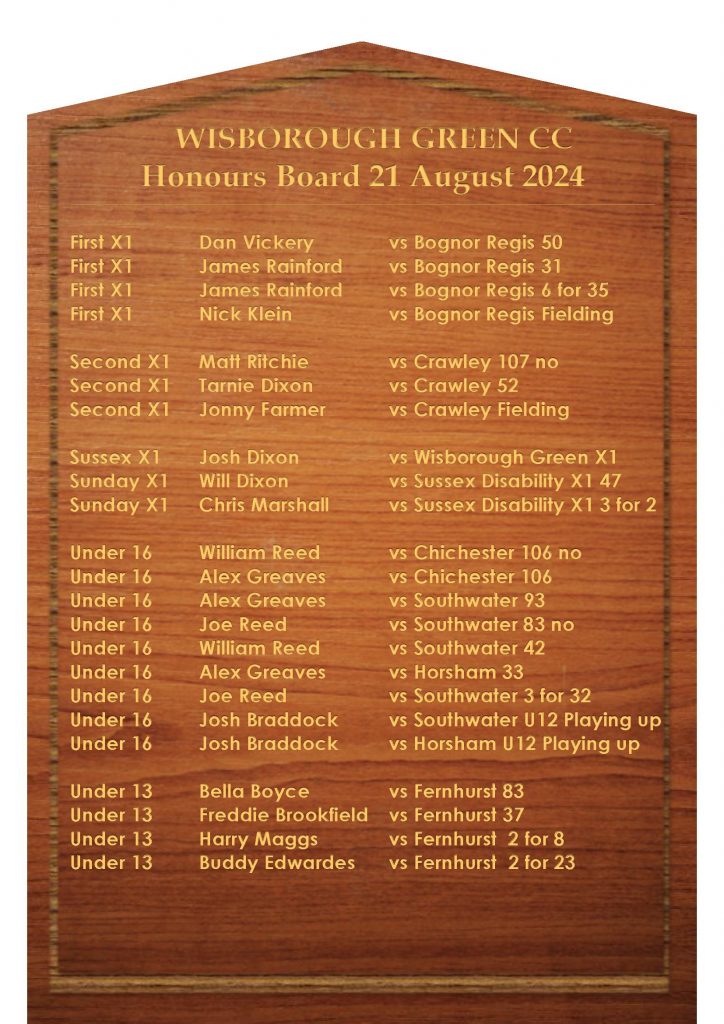 Congratulations to all the players who feature on the Club’s Honours Board this week most notably some of our younger players who featured prominently with the bat.