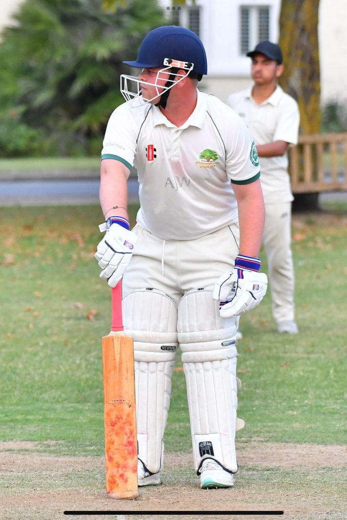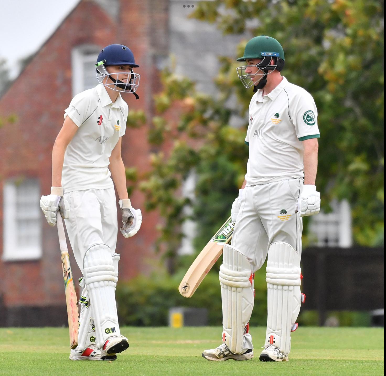 Josh Dixon was very effective up the hill from the Pavillion End, taking 2 wickets. Buddy Edwardes, Harry Maggs and Josh Braddock (a combined age of just 38 making some of us feel very old), bowled with great maturity and accuracy. The fact they are bowling on a wicket a few yards longer than they are used to shouldn’t be under-estimated. Wolfie Finger had a very productive 35 overs in the field, taking 2 wickets and 2 catches. Whenever I’ve played with Wolfie, I’ve noticed the how ball follows him around. Fortunately he catches anything that comes near him. Chris Marshall took 4 wickets, while Phil Maggs and Harry Hunter a wicket each.