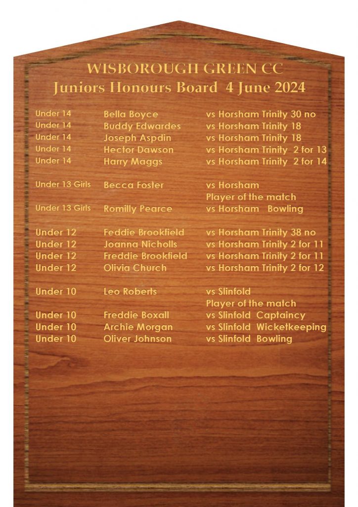 Congratulations to all the players who feature on this week’s Honours Board for the Seniors and a separate Honours Board for the Juniors.