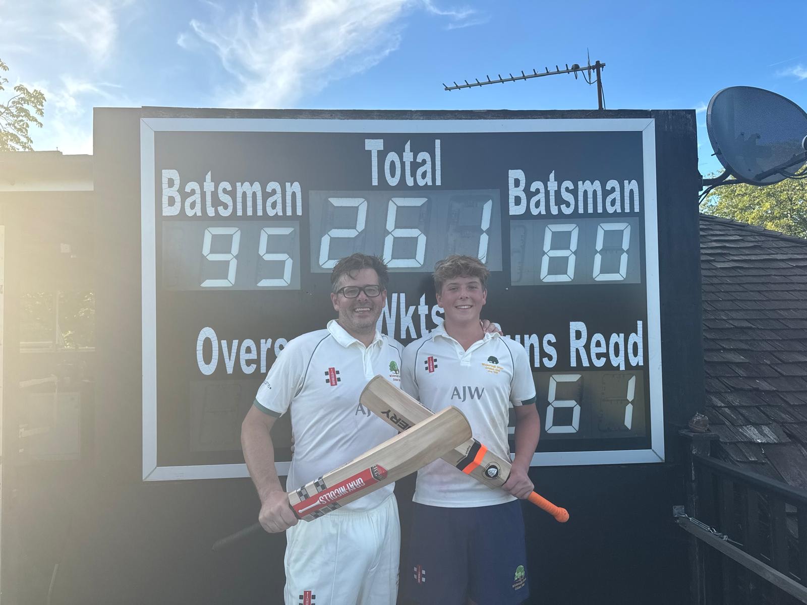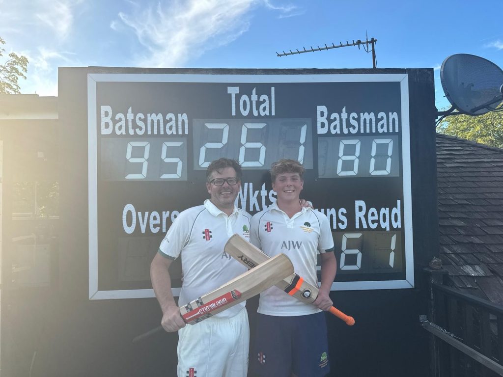 SCS continued his fine form with a trailblazing 50 in no time, but it wasn’t looking pretty when we found ourselves 70-3, and looking down the barrel. What happened next was highly emotional for yours truly – so please allow me to indulge a little. Monty Palmer came into join his father with a big hill to climb – and delivered a coming of age performance to put on 190 from 22 overs, winning the game by 7 wickets inside 34 overs. 80 not out, a wonderful knock, his first fifty, delivered with maturity and no shortage of talent. Well done to Monty (I would say that wouldn’t I…)