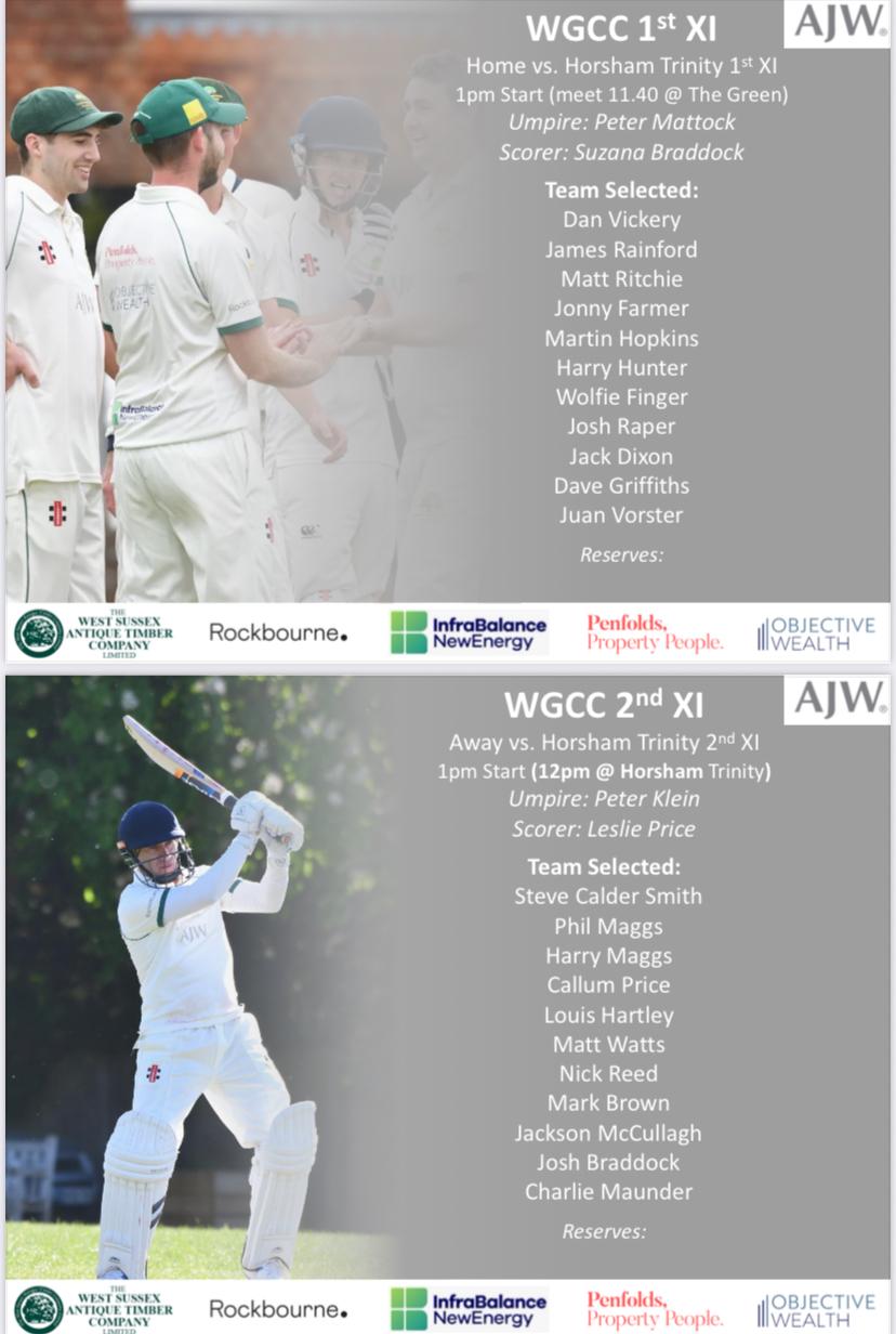 - Second X1 are away to Horsham Trinity at 1 pm on Saturday