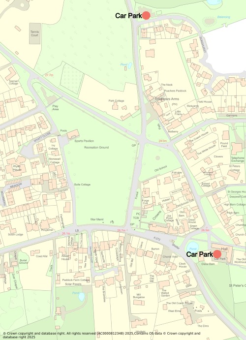 With this in mind we would like to move all parking away from around the village playground, Wyatt Close and Butts Meadow and towards the Village Hall car park where there are 10 spaces and Songhurst Meadow car park where there are 14 spaces. These two additional car parking areas are close to the Green as clearly marked on the map below