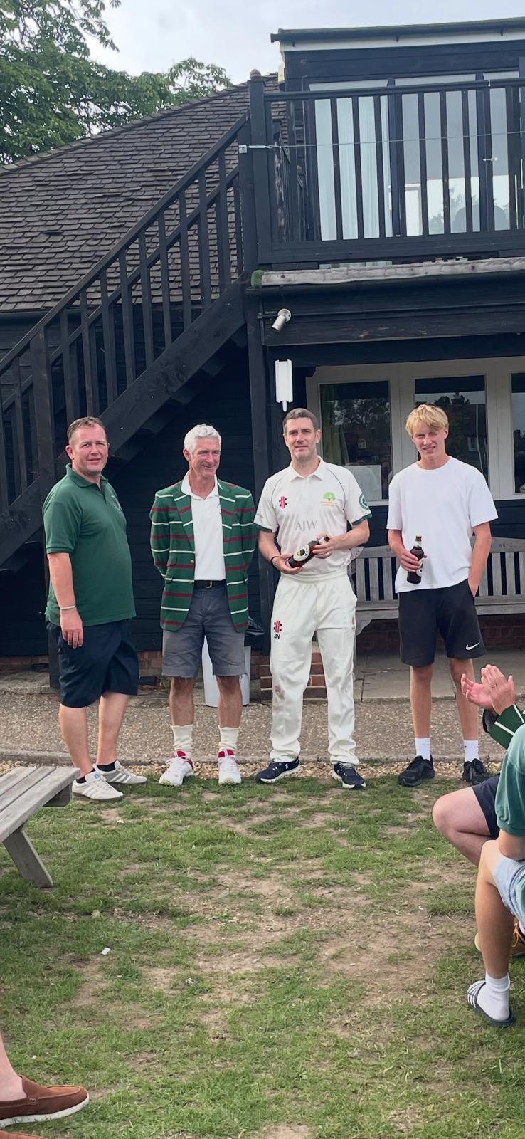 Ed and Reuben Bowes opened the batting (first time father and son had ever done that). They both batted well before Reuben was bowled to 7. Ed batted beautifully for 46, before being run out by James Newman. James then had responsibility to get the score ticking over and he obliged with a well crafted 58. other contributions from Harvey Bartholemew, Harry Hunter, Leon Kilford and James Sadler got Wisborough total to 165 in 30 overs.