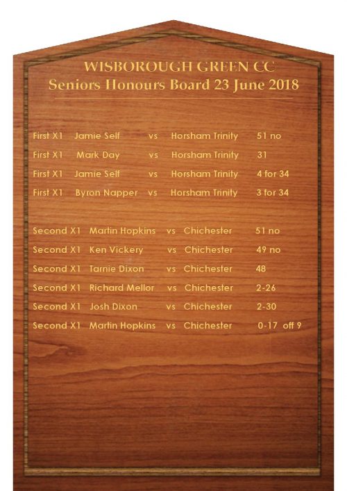 The final scores were Wisborough Green CC 288 vs Horsham Trinity CC 240. An excellent team performance by the Colts who all contributed to the win against the league leaders.